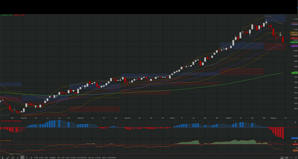 στηρίξεων στις 1.060 – 1.040 μονάδες, θα σήμαινε συναγερμός.