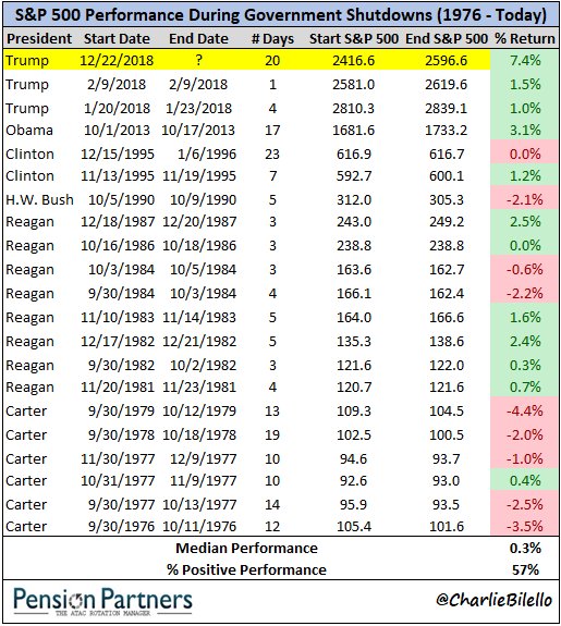 απόδοση της Wall Street στα 21 shutdowns είναι οριακά θετική,