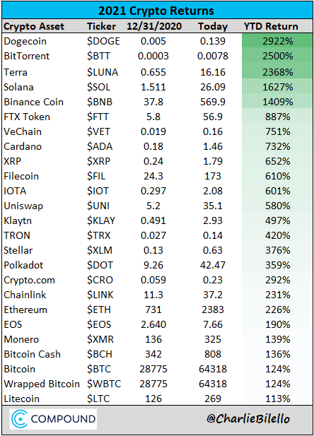τα ψηφιακά νομίσματα. Πάμε λοιπόν να δούμε τις αποδόσεις των