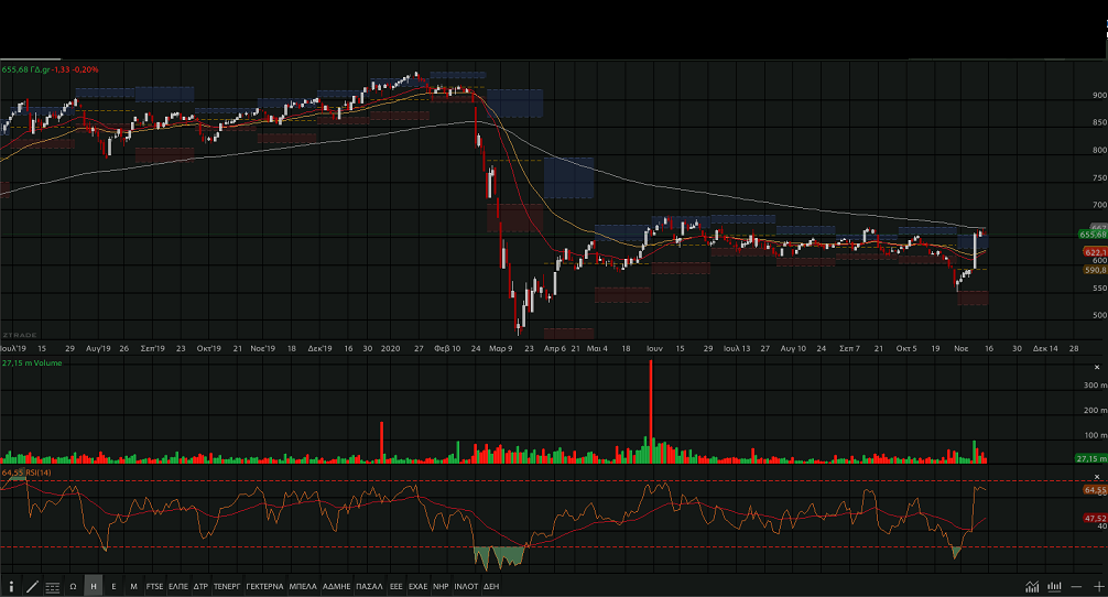 630 – 640 μονάδων (655,68 μονάδες, -0,20% την Παρασκευή),