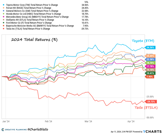 στη μετοχή της Toyota (+35%) και ακολουθεί η Ferrari (+25%)