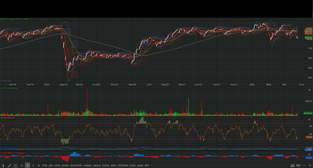 επόμενες ισχυρές στηρίξεις στις 800 και 790 – 780 μονάδες.