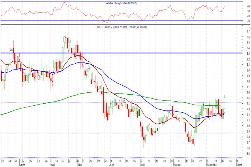 ΕΛΠΕ (7,50 ευρώ, +2,74%), από τις μετοχές του FTSE 25 με την