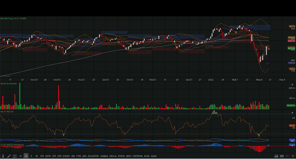 των 850 – 840 μονάδων (κλείσιμο Παρασκευής 862,84 μονάδες)