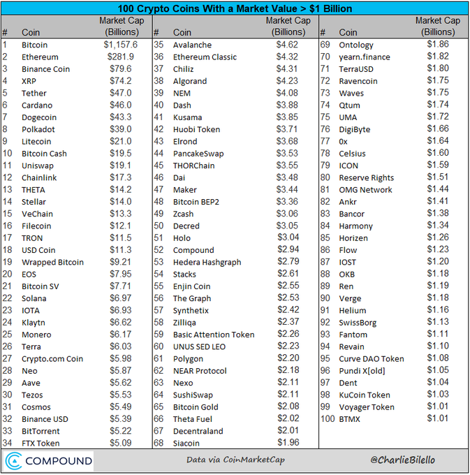 πάνω από 100 ψηφιακά νομίσματα που έχουνε αξία άνω του 1δις