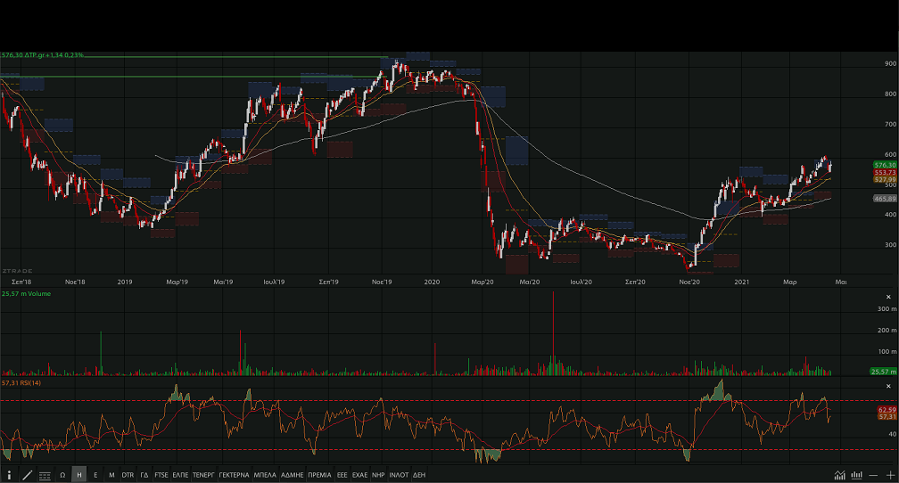 τις πολύ ισχυρές στηρίξεις στις 550 – 540 μονάδες. Και σε