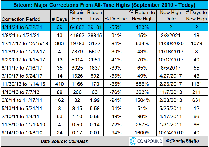 Όλες οι διορθώσεις του Bitcoin