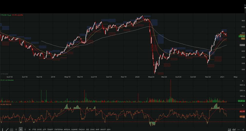 ισχυρή διόρθωση από τα πρόσφατα υψηλά των 800 και πλέον