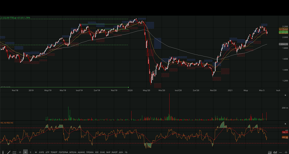 των 2.100 – 2.110 μονάδων, πολύ κρίσιμα τεχνικά επίπεδα, τα