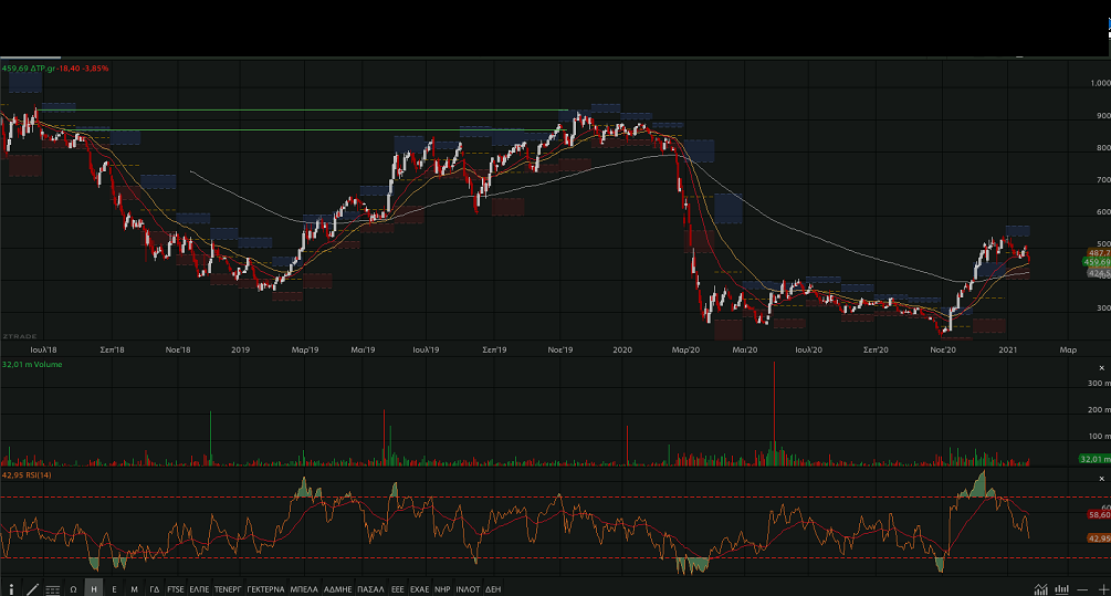 επόμενες ισχυρές στηρίξεις είναι στα επίπεδα των 440 – 450