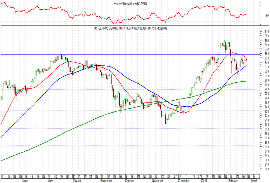 να μείνει ο δείκτης υψηλότερα των 820 – 825 μονάδων (κλείσιμο