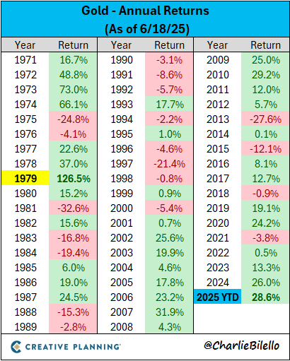 χρυσού από τον Ιανουάριο του 1980 έως τον Ιούνιο του 2025.