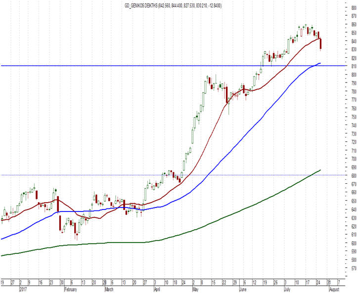 επόμενες στηρίξεις βρίσκονται στις 820 μονάδες, με τις