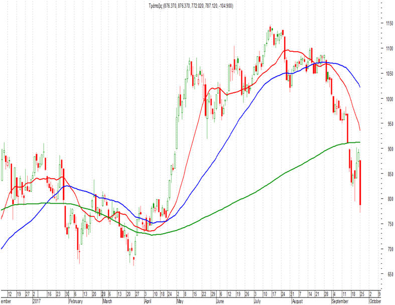 από το περίπου +28% που καταγράφονταν στα υψηλά των 860