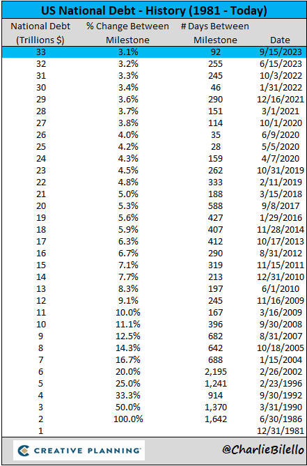 χρέος, το οποίο έσπασε το φράγμα των 33τρις δολαρίων, για