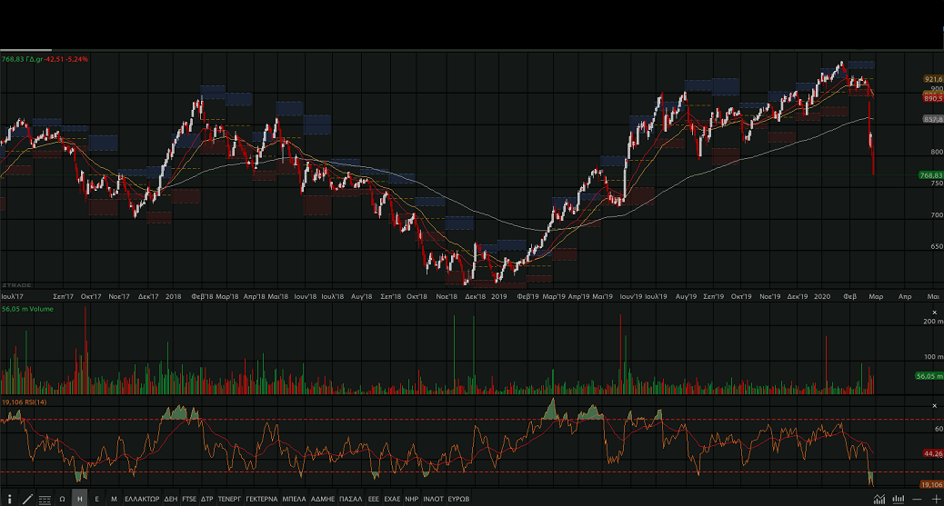 800 μονάδες, ο ΓΔ έκλεισε χθες στις 768,83 μονάδες, -5,24%.