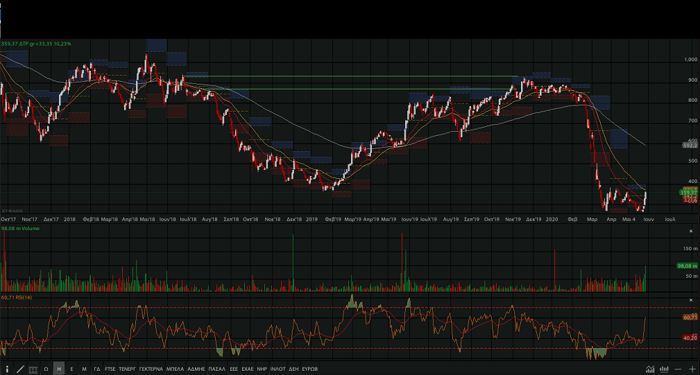 μονάδων (χθεσινό υψηλό ημέρας οι 361 μονάδες). Μια διάσπαση