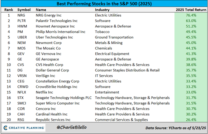 κορυφαίες μετοχές του 2025 καταδεικνύουν ενίσχυση