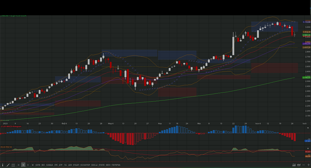 τρέχοντα επίπεδα των 2.970 – 2.960 μονάδων. Χάνοντας και