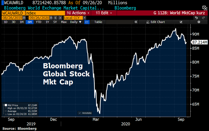 των 87,2τρις δολάρια, τα παγκόσμια χρηματιστήρια απέχουνε