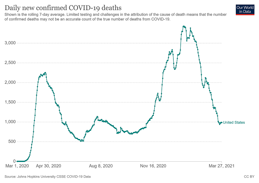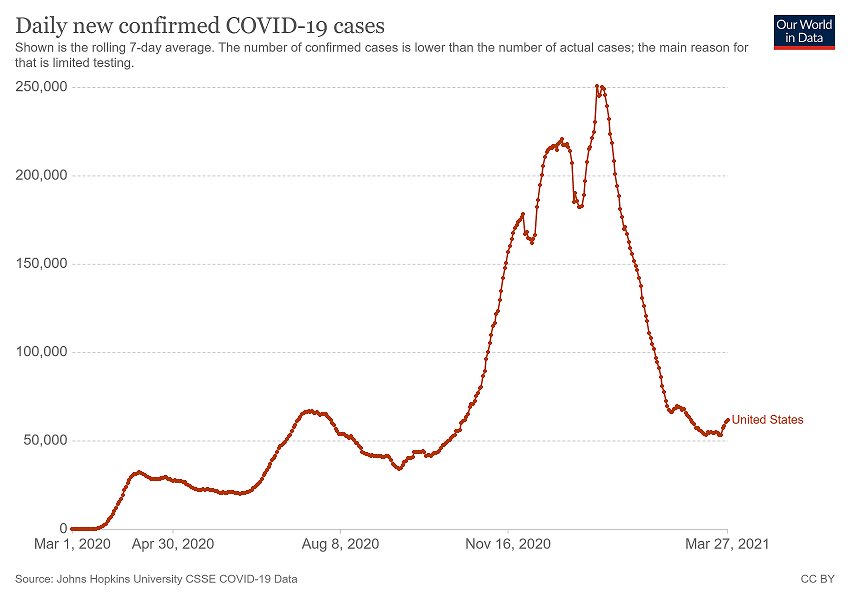 απεικονίζεται η πορεία της πανδημίας στις ΗΠΑ (27,4% του