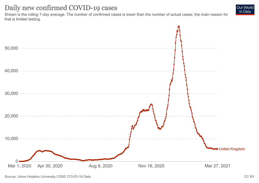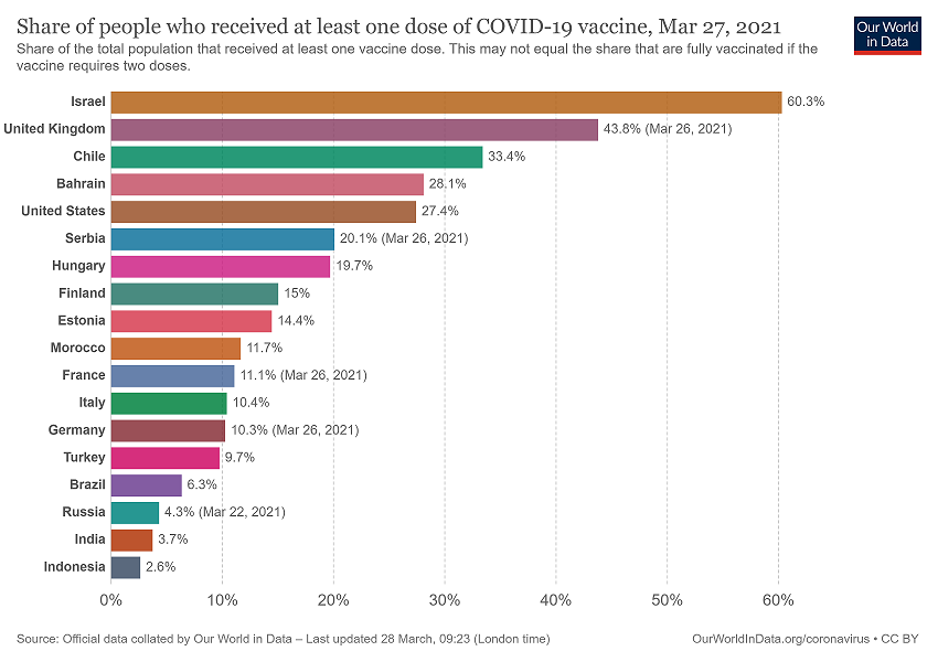 πληθυσμού έχει λάβει τουλάχιστον μια δόση) και τη Βρετανία (στο