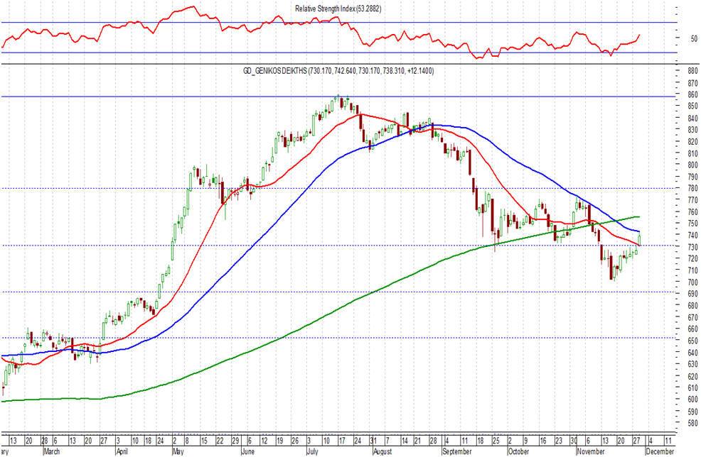 υψηλότερα των 725 – 735 μονάδων (έκλεισε στις 738,31 μονάδες,