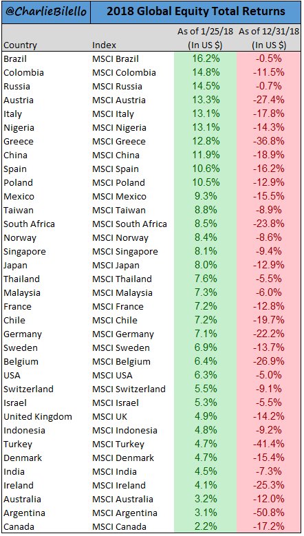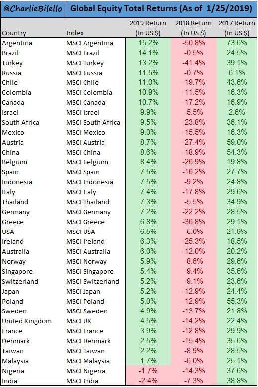 λοιπόν πίνακες παρουσιάζουνε τις αποδόσεις των δεικτών χωρών