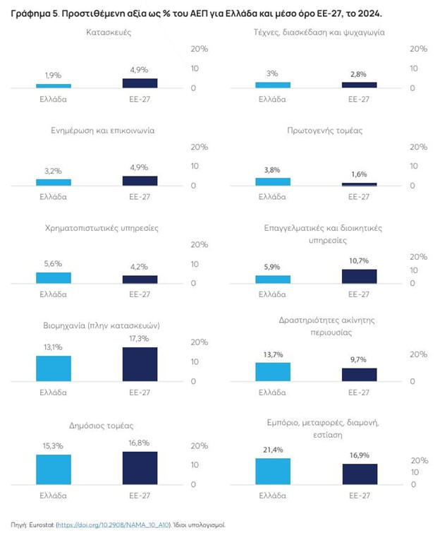εμφανίζει χαμηλά ποσοστά προστιθέμενης αξίας στο ΑΕΠ στις