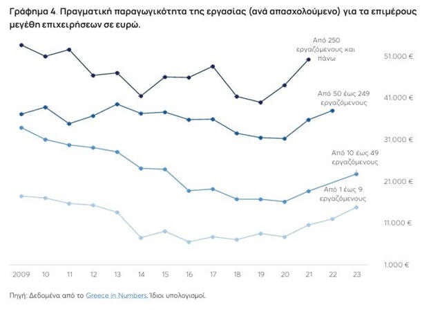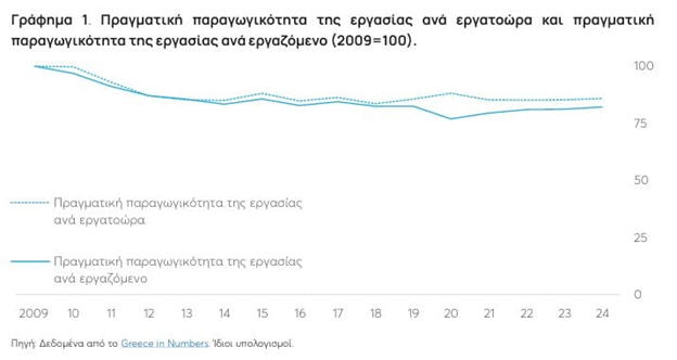 2024 η παραγωγικότητα ανά ώρα εργασίας ήταν περίπου 14%