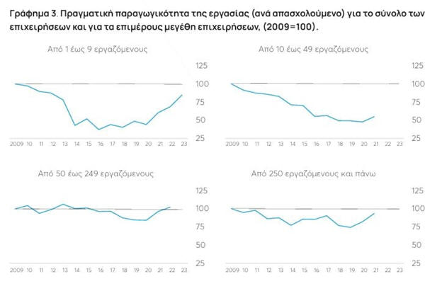 Παράλληλα, η παραγωγικότητα ανά ώρα εργασίας μειώνεται
