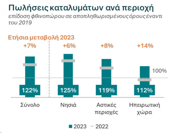 αστικά κέντρα +8%, ηπειρωτική χώρα +14%), με τους