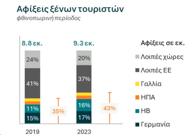 αναλυτικά, το φθινόπωρο επισκέφθηκαν τη χώρα μας 9,3