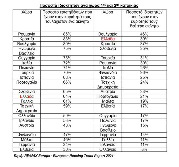 ιδιοκτητών έχει δεύτερη κατοικία στην ίδια χώρα, ενώ οι
