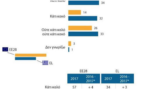 συμμετοχή της Ελλάδας στην ΕΕ με το 34% να δηλώνει ότι είναι
