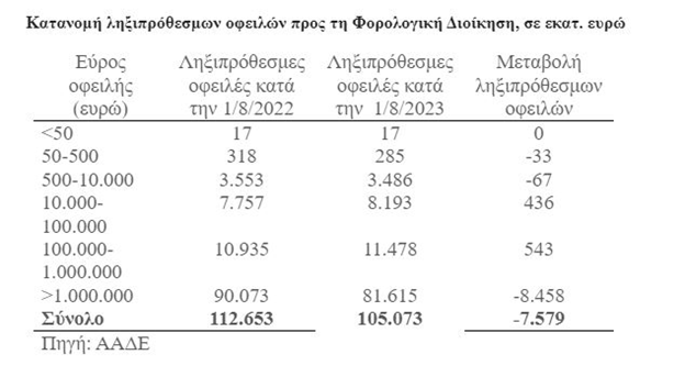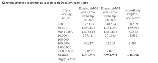– Χρέη στην Εφορία έως 50 ευρώ έχουν 848.584