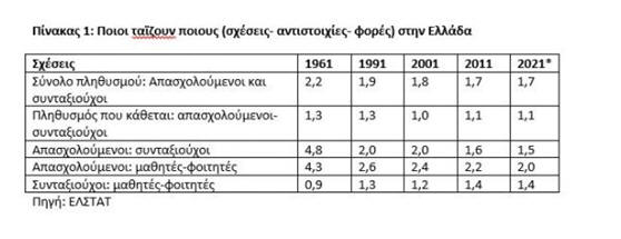 και 1,4 συνταξιούχοι, έναντι 0,9 το 1961. Δηλαδή, οι