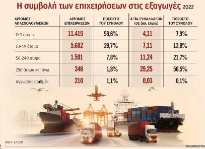 πραγματοποίησαν το 2022 το 21,7% των ελληνικών εξαγωγών