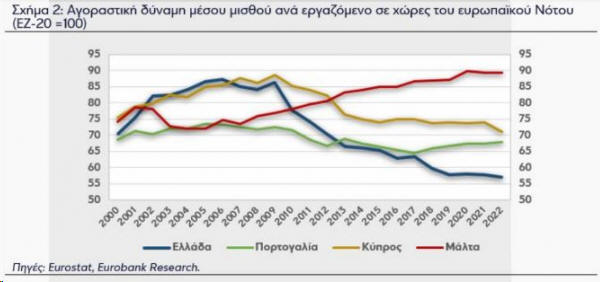 μελέτη της EurobankΤο 2000, η αγοραστική δύναμη του μέσου