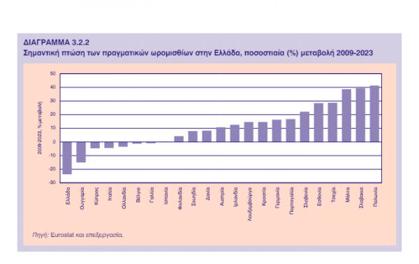 πραγματικό μέσο ωρομίσθιο στην Ελλάδα έχει μειωθεί κατά