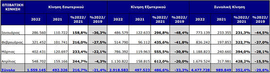 κίνηση του αεροδρομίου κατά τη διάρκεια του Απριλίου ανήλθε