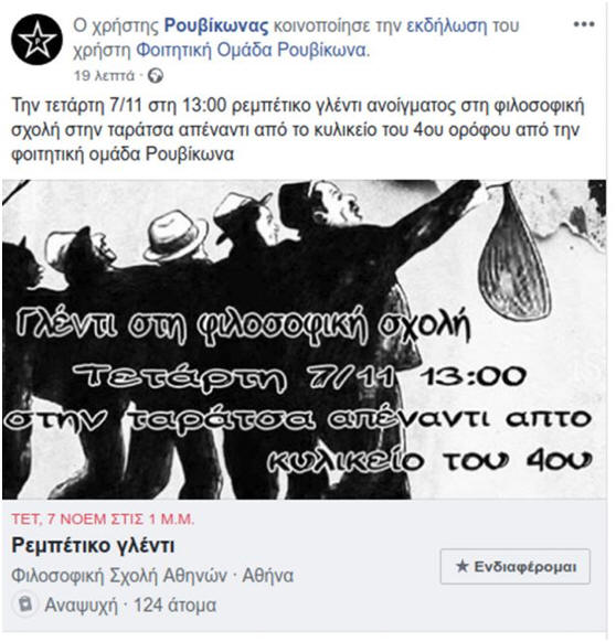 γλέντι στη Φιλοσοφική Σχολή. Όπως αναφέρει ο Ρουβίκωνας στην
