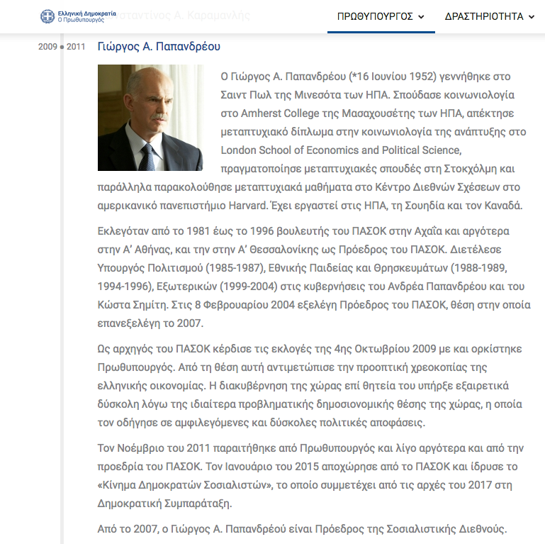 γεγονός ότι στο βιογραφικό του Γιώργου Παπανδρέου γίνεται