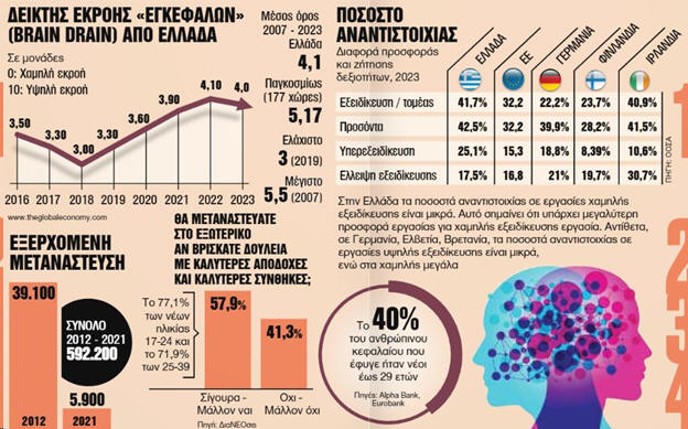 ποσοστό περίπου 40% το ανθρώπινο κεφάλαιο που έφυγε ήταν