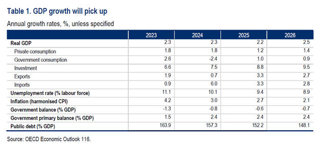 ΟΟΣΑ, αναμένει το ελληνικό ΑΕΠ να αυξηθεί κατά 2,3% το 2024,
