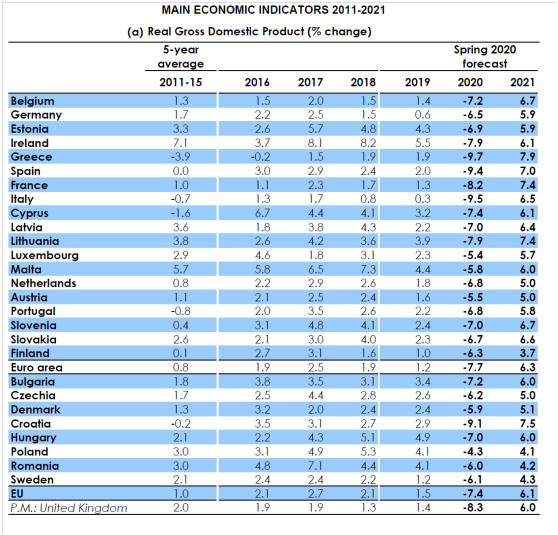 Ε.Ε., με συρρίκνωση μεγαλύτερη και από αυτές τις Ισπανίας