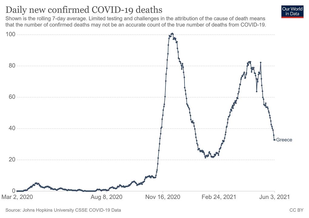απεικονίζονται τα νέα κρούσματα και οι θάνατοι στη χώρα μας,