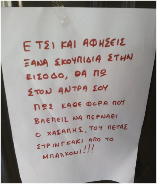 μηνύματα που αφήνονται στις εισόδους των πολυκατοικιών, που