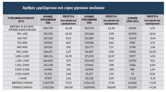 εργαζομένων ανά εύρος μηνιαίων αποδοχών.