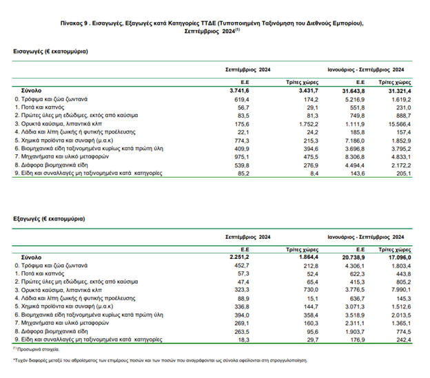 μήνα Σεπτέμβριο 2024 παρουσίασε αύξηση κατά 366,7 εκατ.
